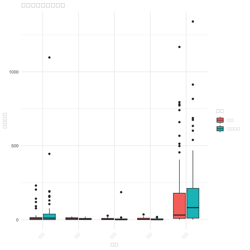 Warning message: “Removed 11 rows containing non-finite outside the scale range (`stat_boxplot()`).”