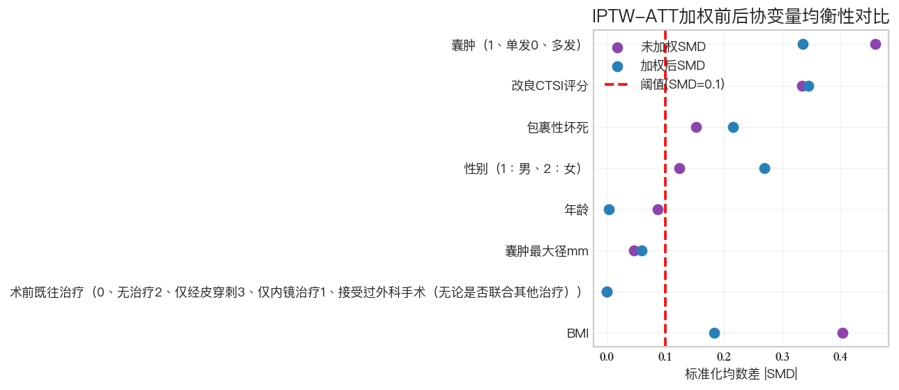 2026-02-13 23:23:21,906 - INFO - IPTW加权后SMD检查:通过(所有SMD<0.1)