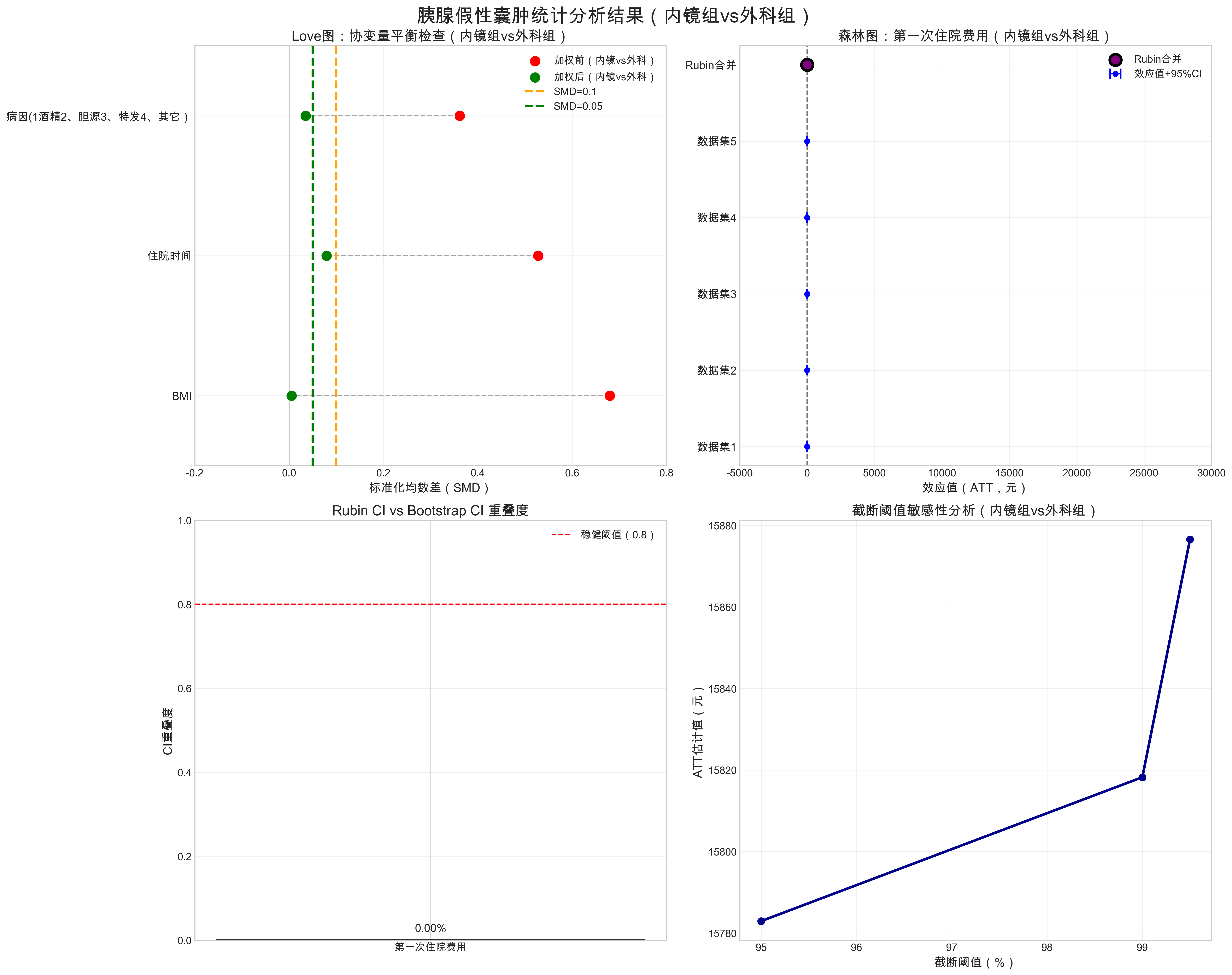 2026-02-13 23:24:21,350 - INFO - 5. 协变量平衡:IPTW加权后SMD<0.1,内镜组vs外科组协变量平衡良好